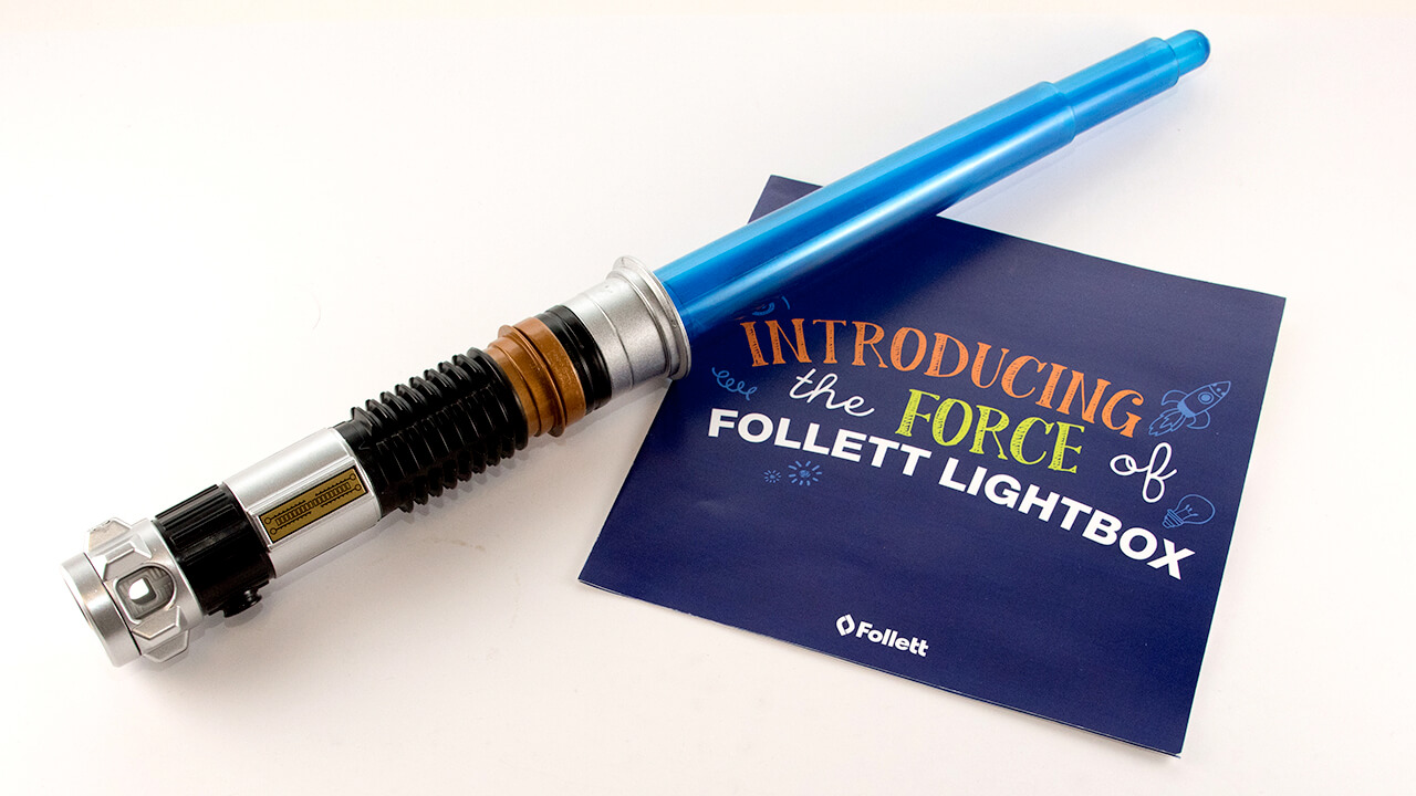 Follett Lightbox™ is a revolutionary, interactive learning resource. And that called for an equally out-of-this-world launch. To energize the sales force before the kickoff meeting, we sent them a direct mailer with a lightsaber—an engaging gift that reinforced the product name. Next, we developed sales materials and a landing page to propel Lightbox into the stratosphere. The Star Wars theme was so well-received, it was used in other Follett presentations.